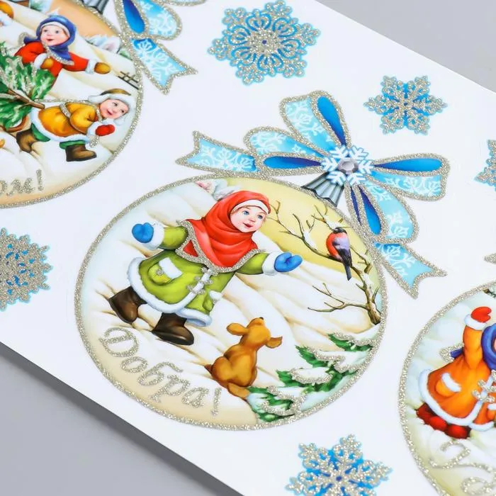 Статическая наклейка для окон и зеркал Room Decor «Рождественские шары», 21×53 см — Характеристики