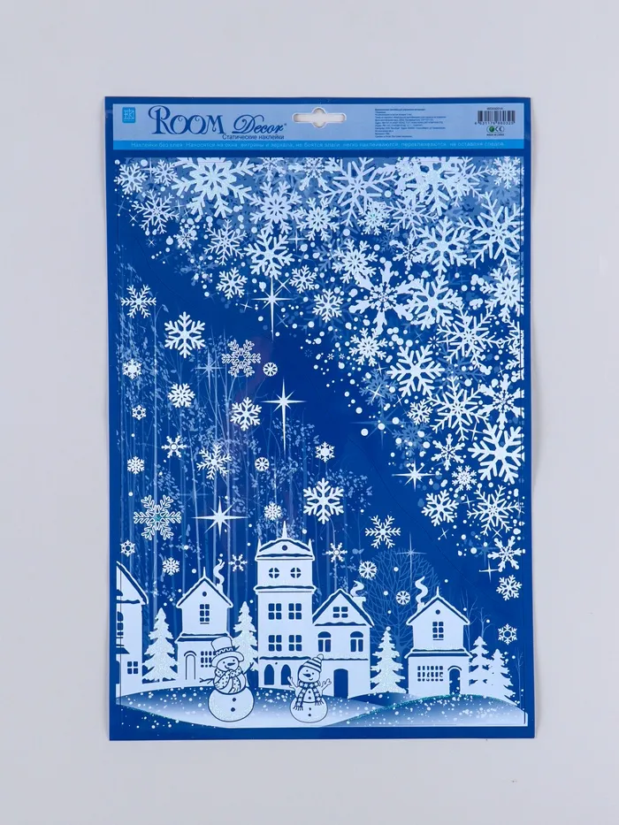 Статическая наклейка интерьерная для окон и зеркал Room Decor «Снежный городок», 26.5×40 см — Характеристики