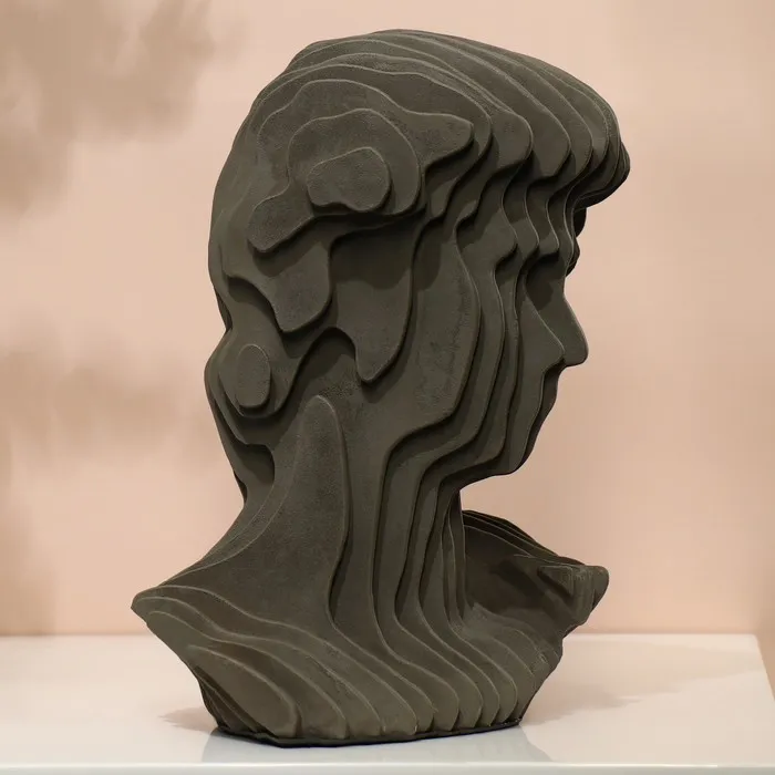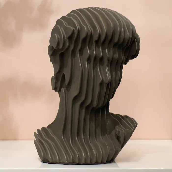 Серый бюст Давида — это скульптура для тех, кто ценит вечное в искусстве. Классический образ, воплощённый в современном материале, привносит в пространство ауру спокойной силы и безупречного вкуса. Эта работа — не просто декор, а диалог с эпохой Возрождения, застывший в благородной монохромной палитре.