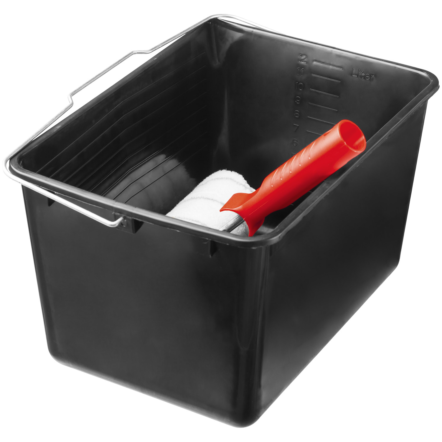 Для работы малярным валиком, а также для разлива, смешивания и переноски лакокрасочных материалов.