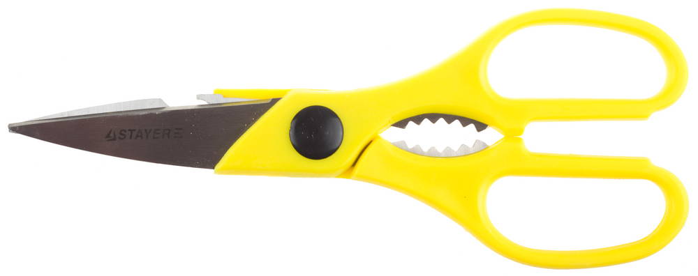 Усиленные ножницы STAYER применяются для разрезания как толстых, так и тонких листовых материалов (ткани, картона, резины, кожи, бумаги, пленки). Они изготовлены из высококачественной нержавеющей стали и имеют прецизионную заточку. Благодаря этому достигается точность и минимальные усилия при резе.