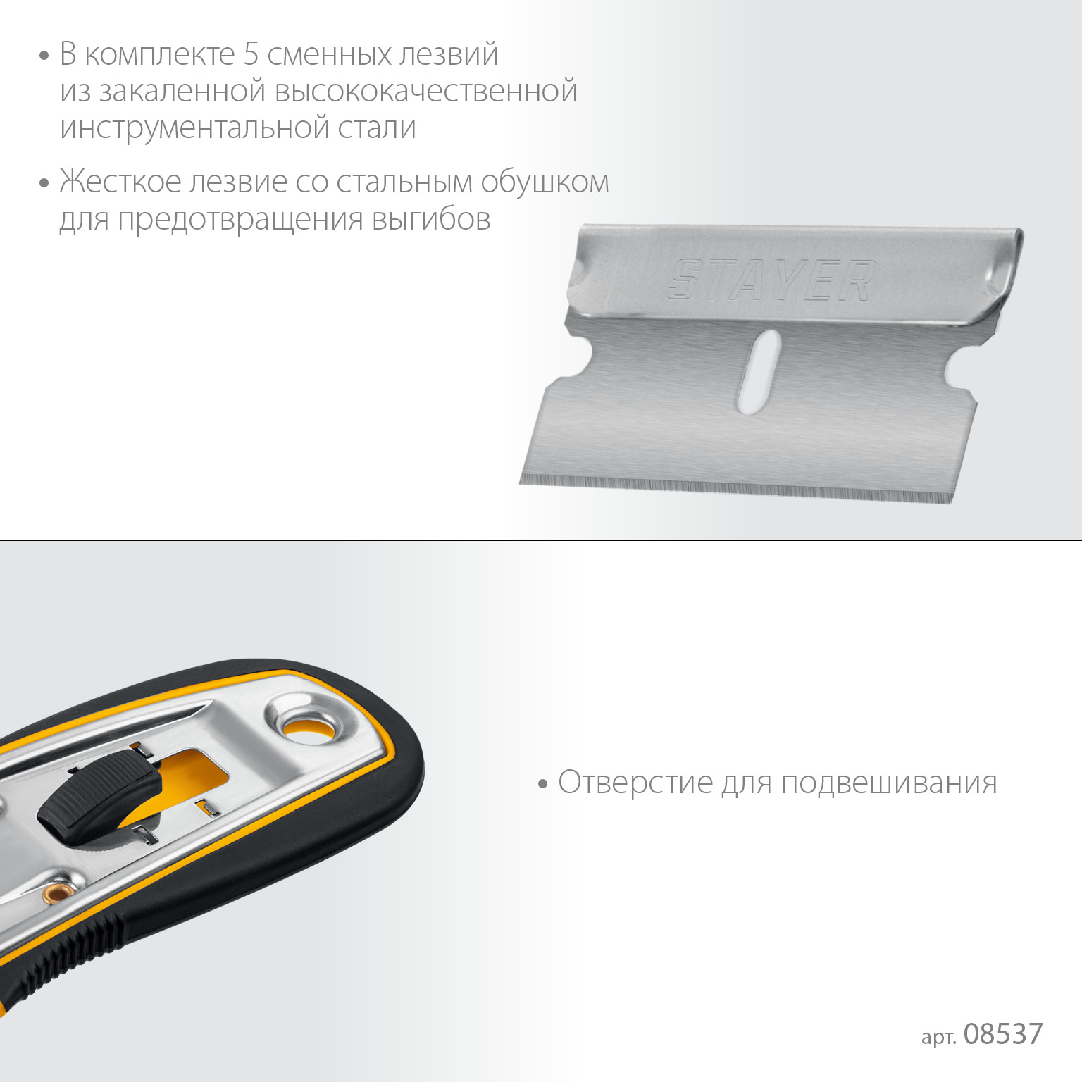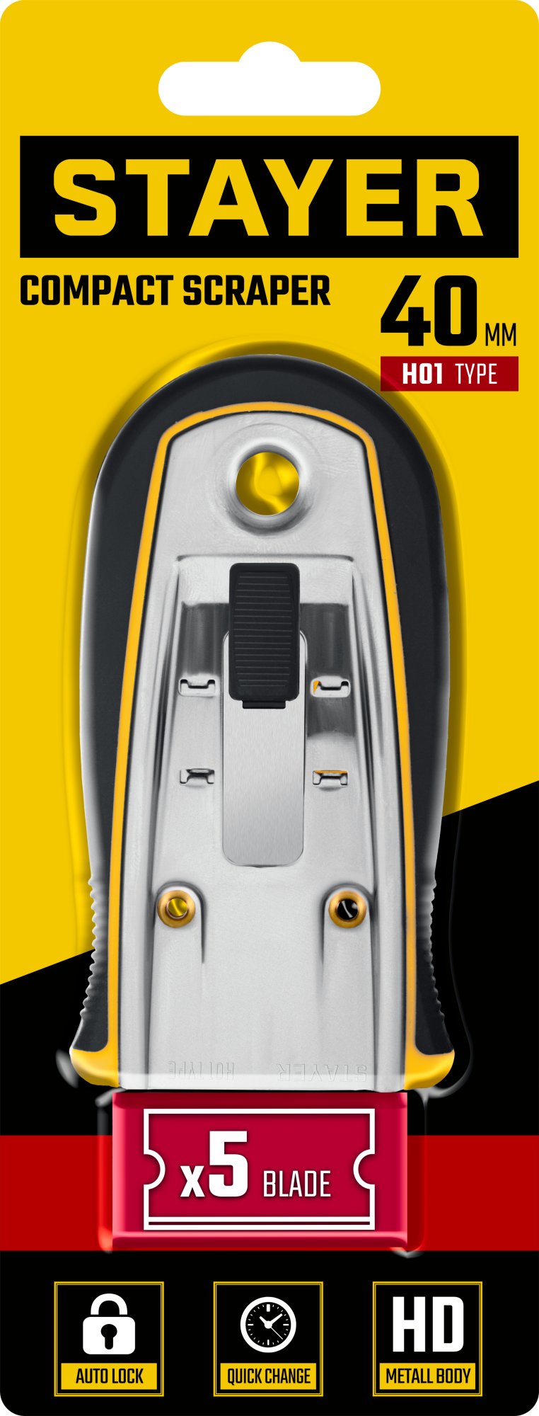 STAYER 40 мм, 5 доп. лезвий, скребок с выдвижным лезвием (08537)
