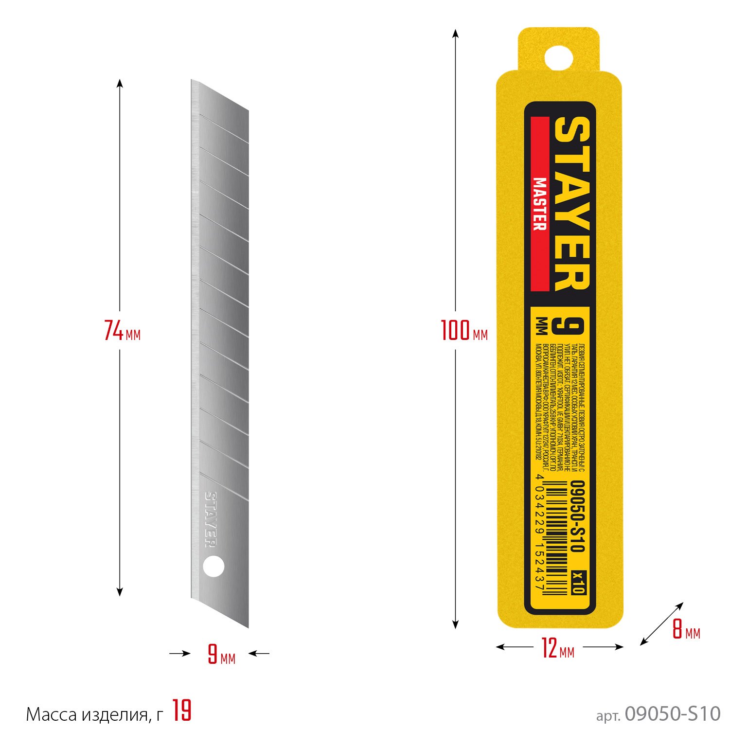 Ширина лезвия, мм: 9