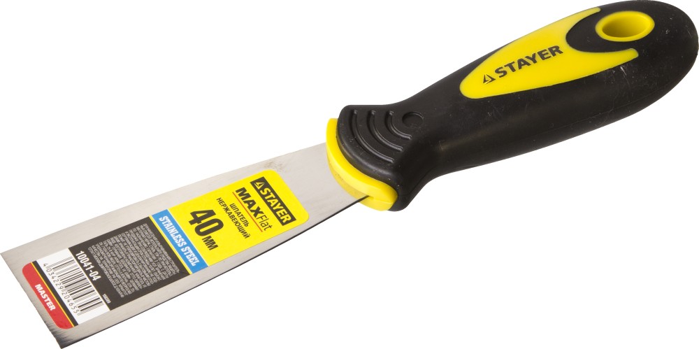 STAYER MAXFlat, 40 мм, профилированное полотно, двухкомпонентная ручка, нержавеющий, шпатель (10041-04)