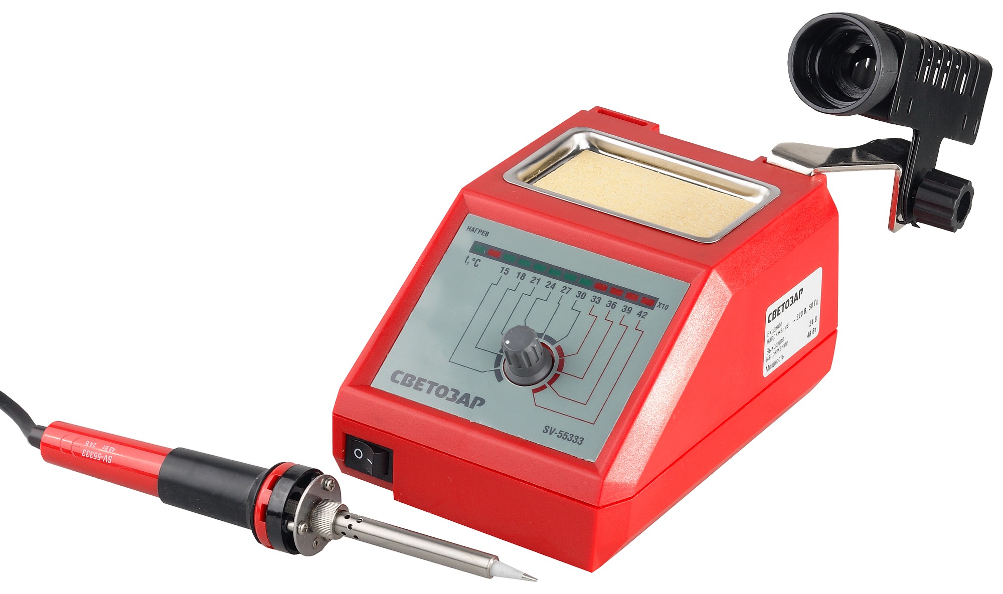 • Имеется поверхность для очистки жала паяльника от остатков припоя