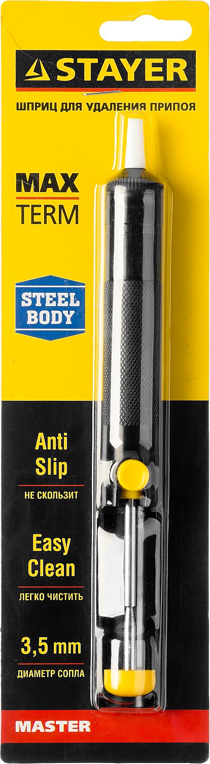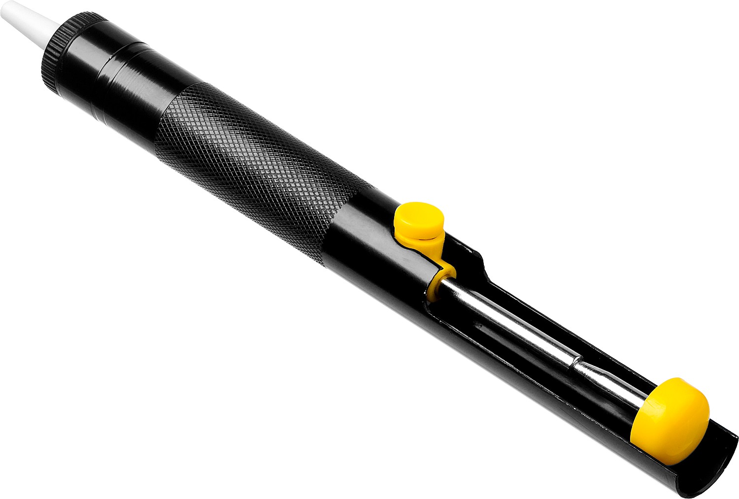 Шприц применяется совместно с электропаяльником для удаления свинцово-оловянного припоя с печатных плат и иных мест пайки. Удобен в использовании благодаря автоматическому срабатыванию штока с поршнем при нажатии на кнопку фиксатора.
