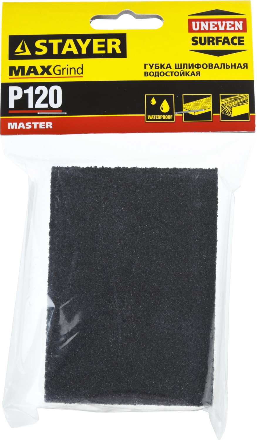 STAYER Р120, 100 х 68 х 26 мм, водостойкая, четырехсторонняя шлифовальная губка (3560-1)