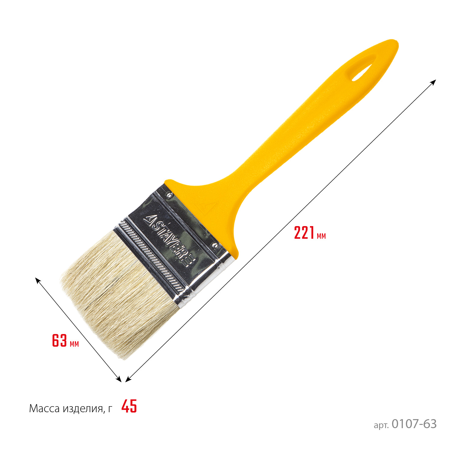 Натуральная щетина обеспечит оптимальное нанесение различных видов ЛКМ, щетина кисти надежно закреплена бандажом из никилированной стали, а наличие легкой пластмассовой рукоятки обеспечит комфортную работу
