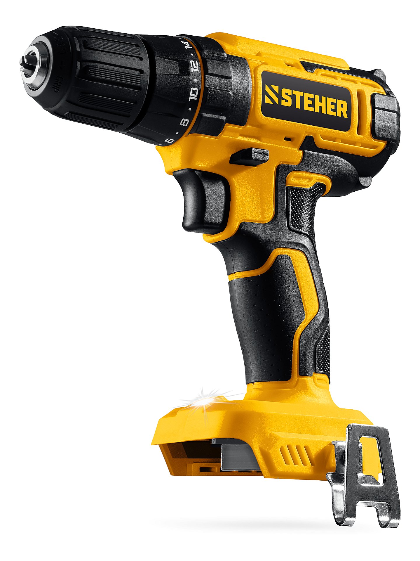- Скоба для крепления на поясе, устанавливаемая с любой стороны инструмента