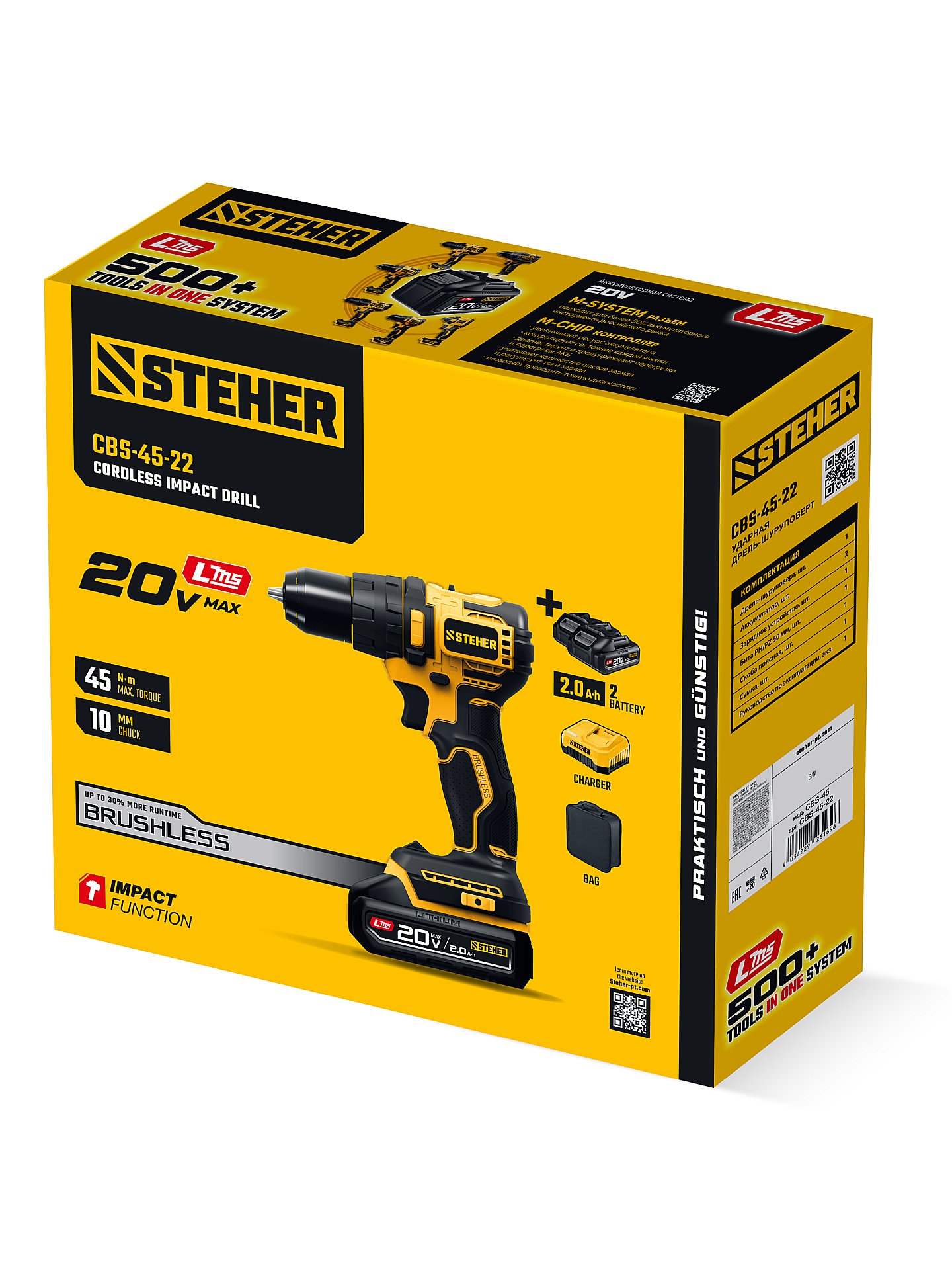 Бесщеточная дрель-шуруповерт ударная STEHER обеспечивает как точное заворачивание маленьких саморезов, так и уверенное закручивание крупного крепежа до 8мм. Компактный размер и современный дизайн делают ее удобной для работы. Комплектация с двумя аккумуляторами позволяет работать практически без остановки