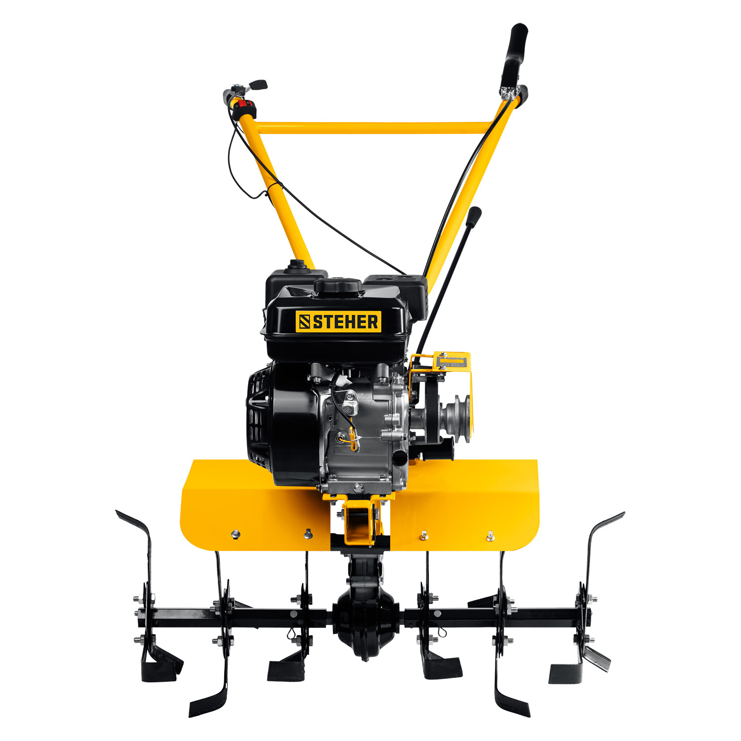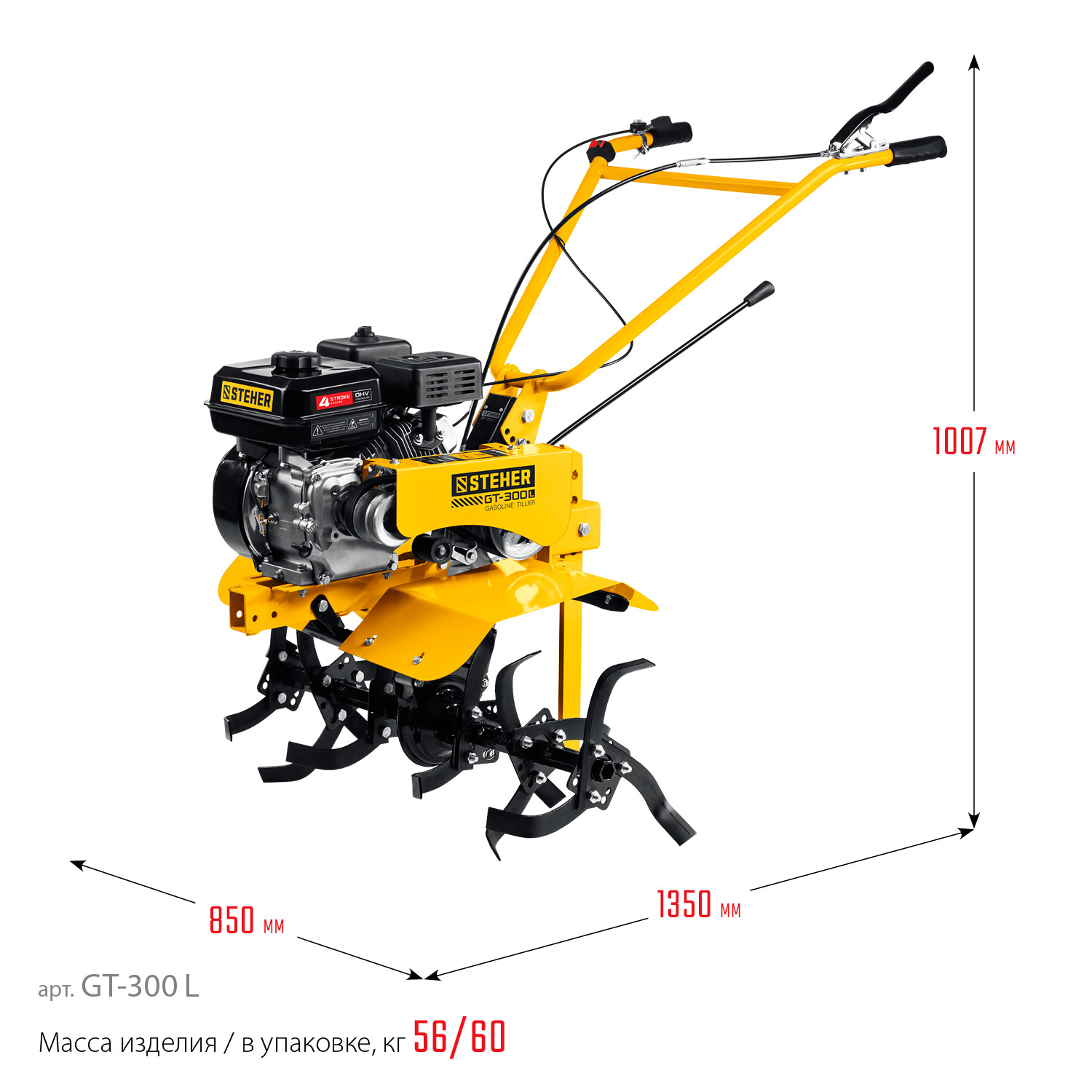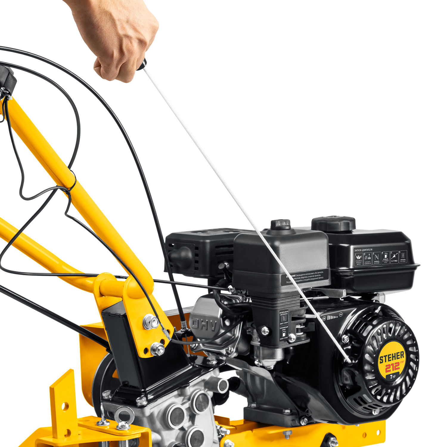 - Рукоять мотоблока с возможностью регулировки по вертикали делает управление более комфортным