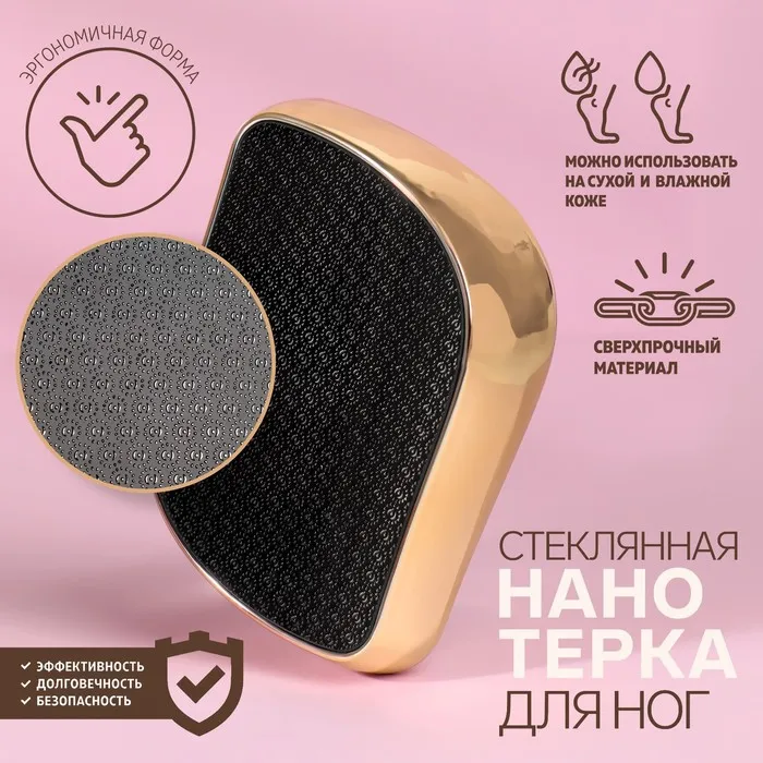 Нанотёрка из сверхпрочного закалённого стекла бережно и качественно очистит пятки от мозолей и натоптышей. Благодаря уникальной поверхности подойдёт для обработки чувствительной кожи.