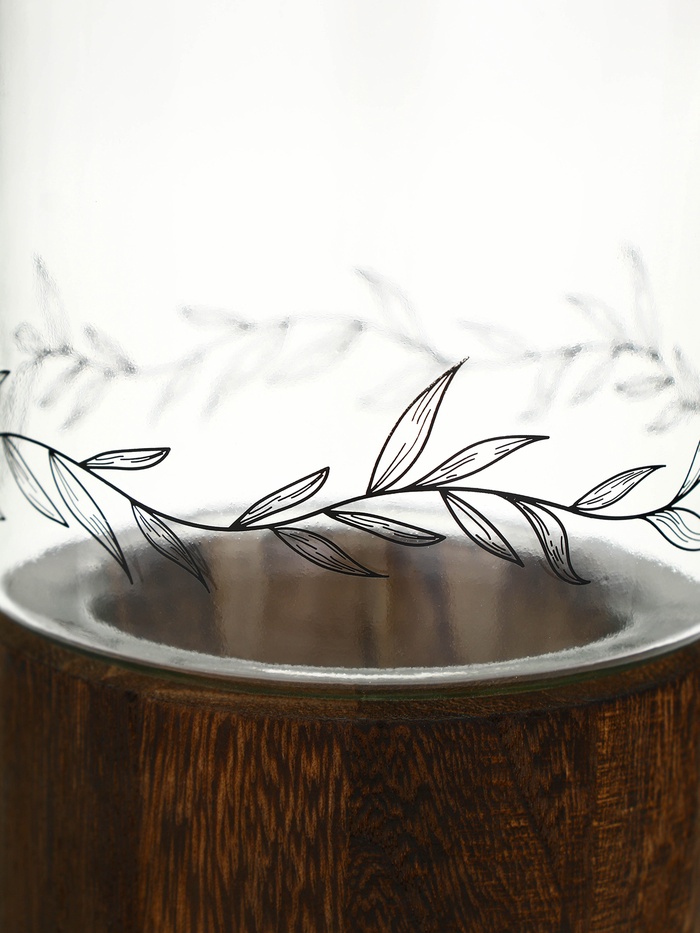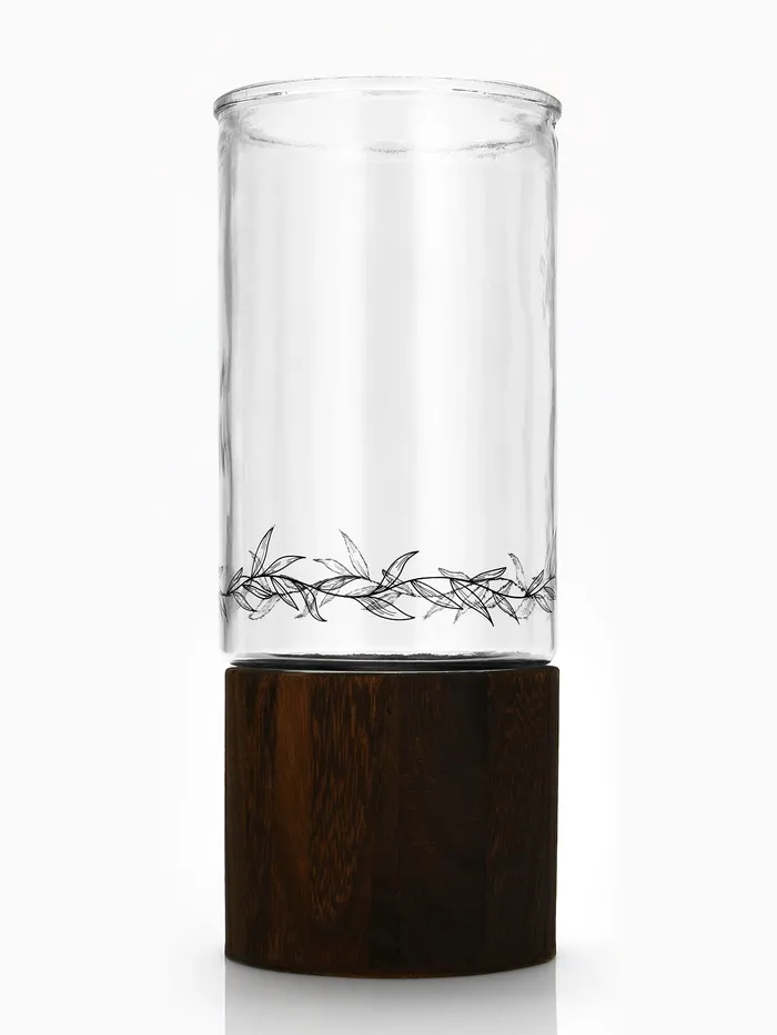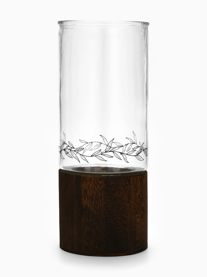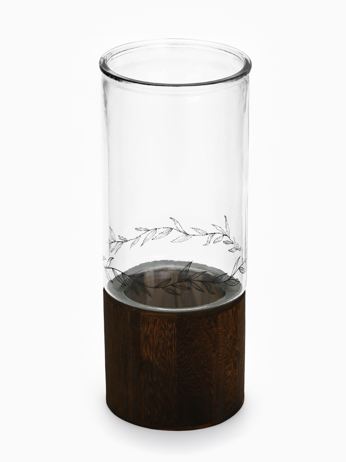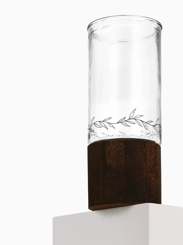 Стеклянная ваза с деревянной подставкой, 10х25,5х10 см — Характеристики