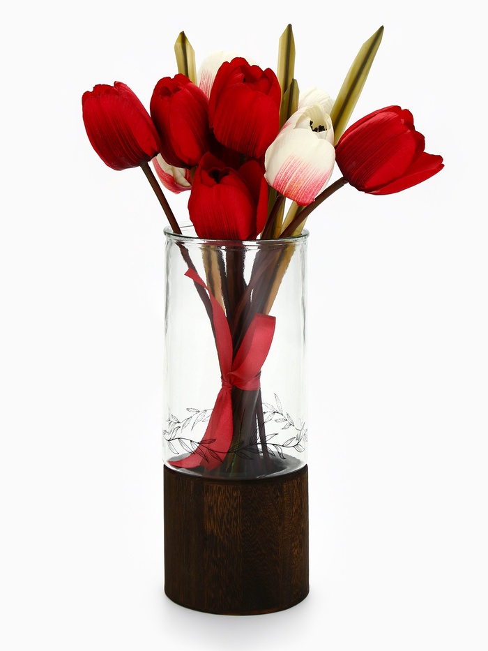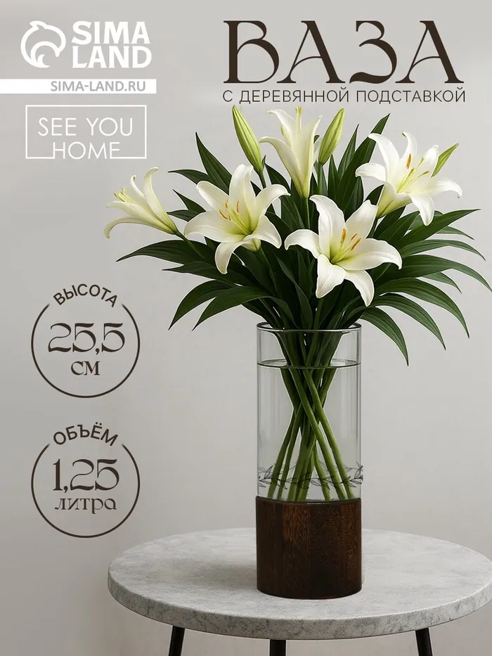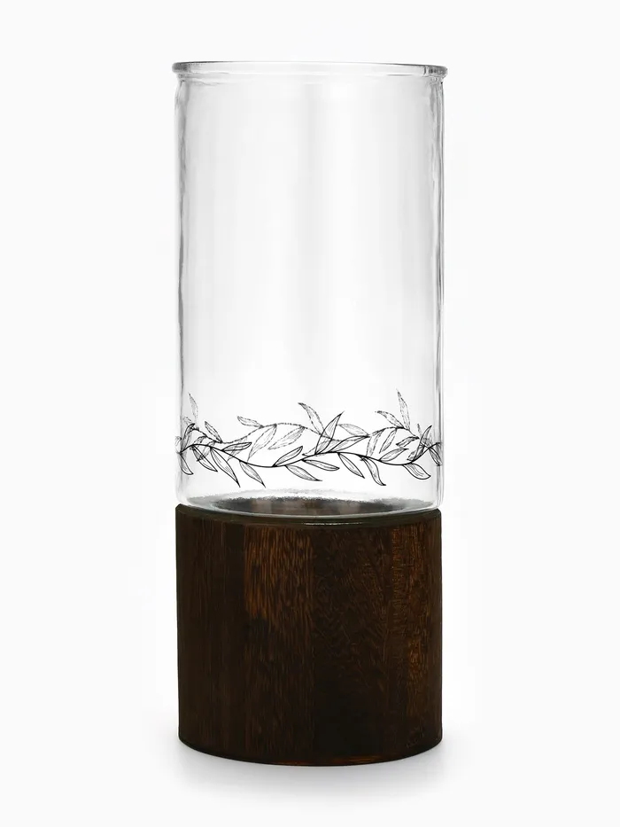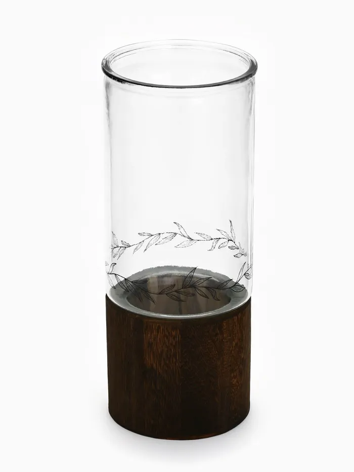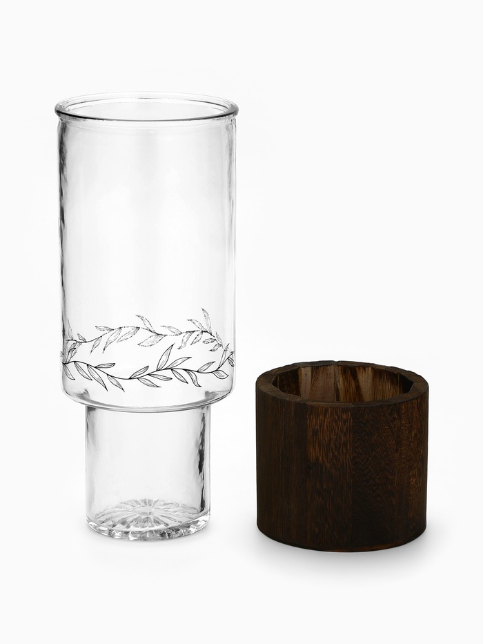 Стеклянная ваза с деревянной подставкой, 10х25,5х10 см — Характеристики