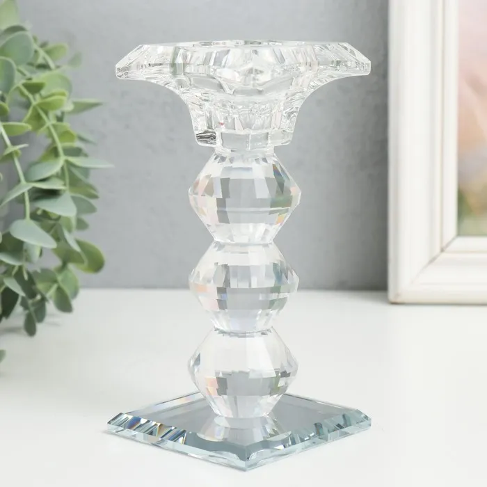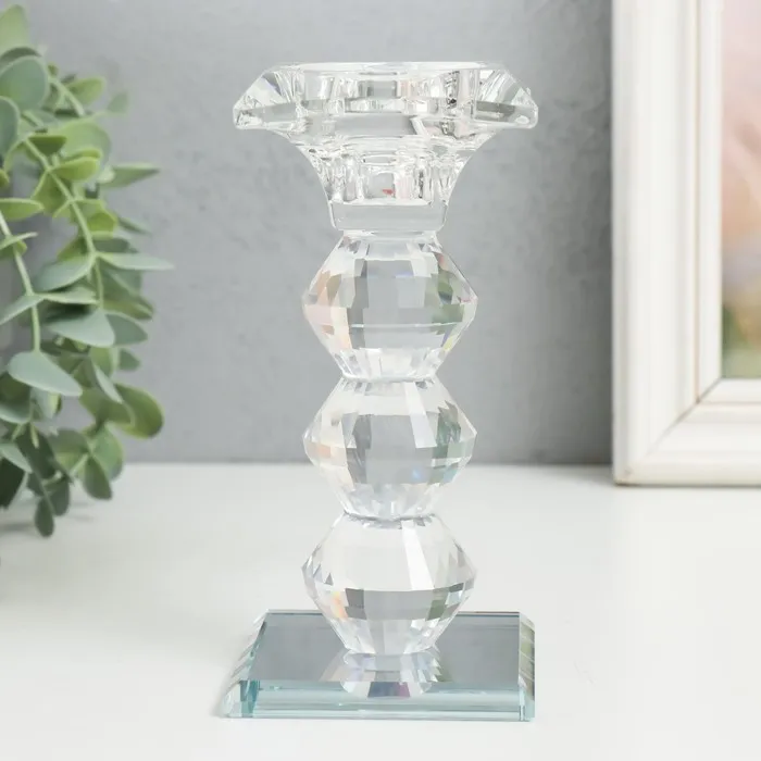 Стеклянный подсвечник на 1 свечу «Бефана с 3 подъемами», прозрачный, d=2.2 см и 3.5 см; 6×6×14 см — Характеристики