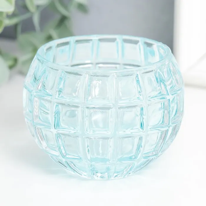 Стеклянный подсвечник на 1 свечу «Бочонок», d=4.5 см, голубой, 7.5×7.5×6 см — Характеристики