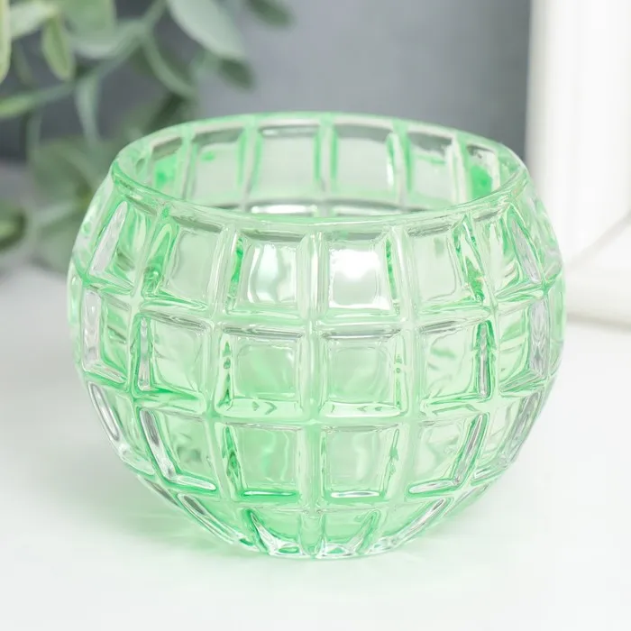 Стеклянный подсвечник на 1 свечу «Бочонок», d=4.5 см, зелёный, 7.5×7.5×6 см — Характеристики