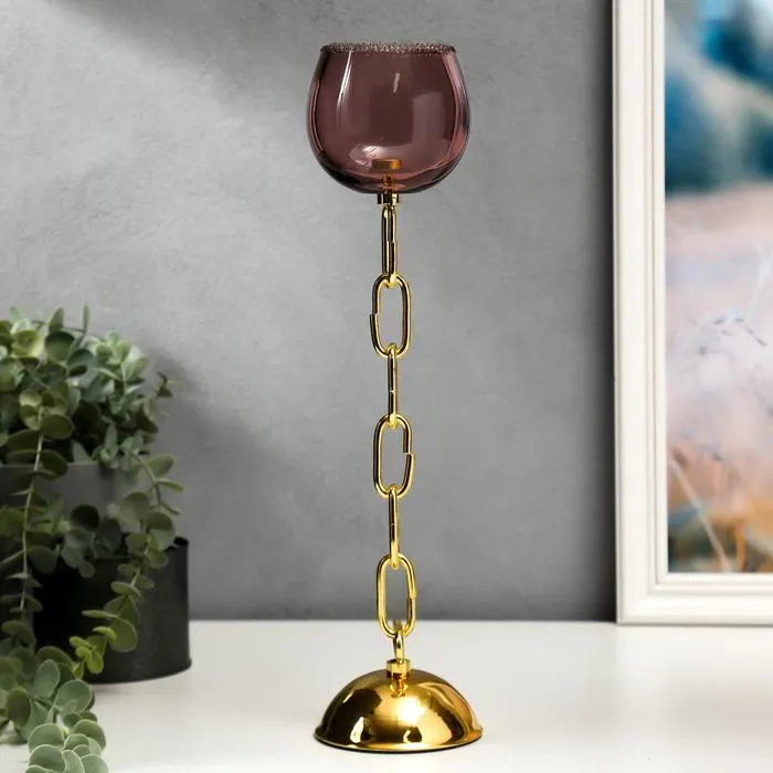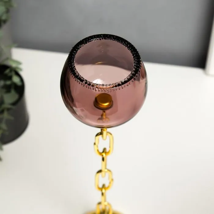 Стеклянный подсвечник на 1 свечу «Бокал и цепь», розовый и золото, 32×9×9 см — Характеристики