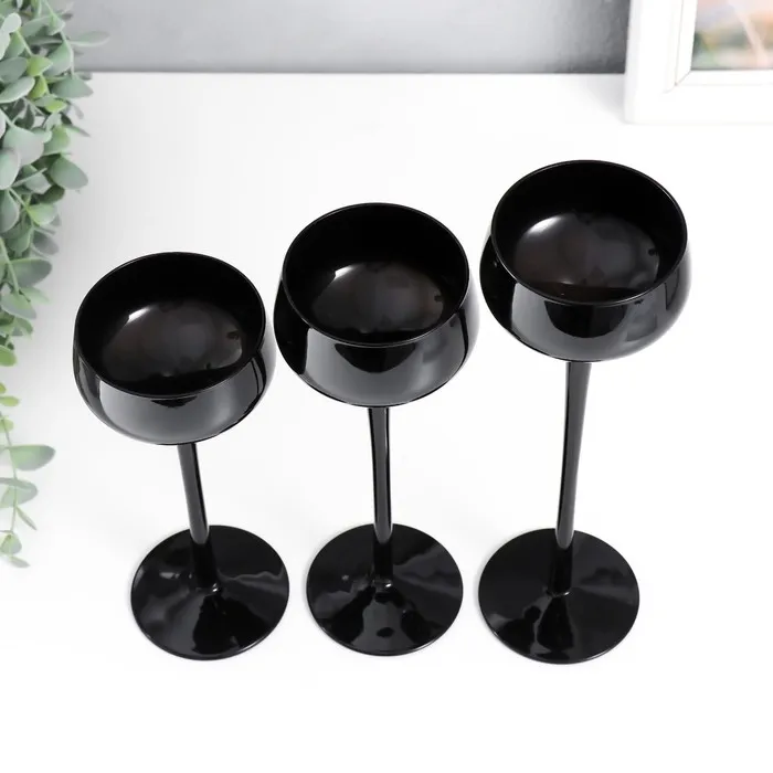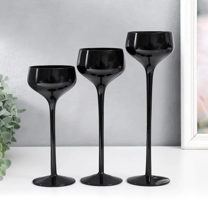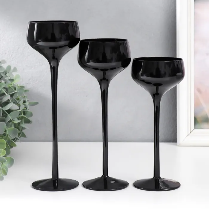 Стеклянный подсвечник на 1 свечу «Бокал-креманка», набор 3 шт., чёрный, h= 20 см, 23 см, 26×12×12 см — Характеристики