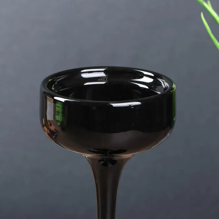 Стеклянный подсвечник на 1 свечу «Бокал-креманка», набор 3 шт., чёрный, h= 20 см, 23 см, 26×12×12 см