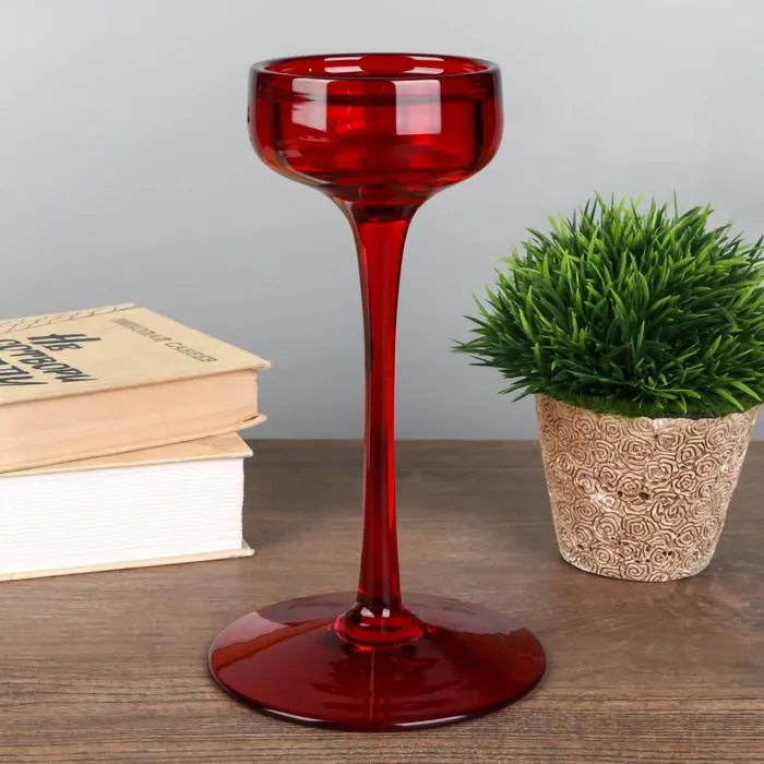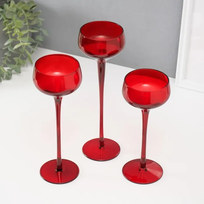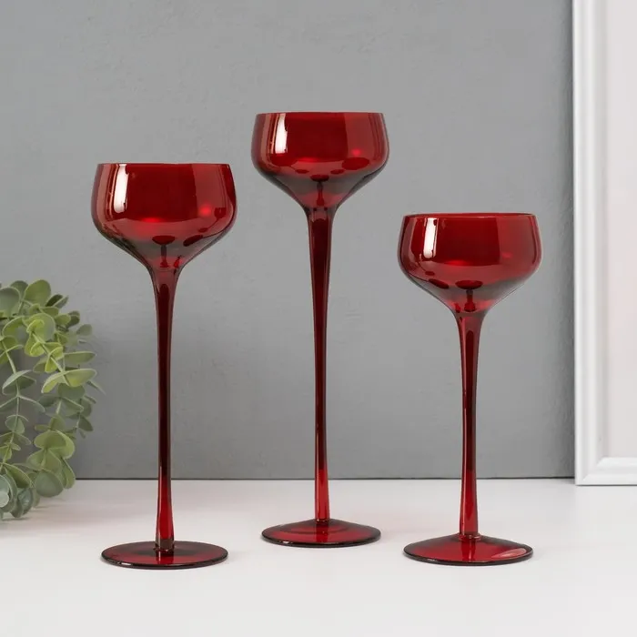 Стеклянный подсвечник на 1 свечу «Бокал-креманка», набор 3 шт., красный, h=20 см, 23 см, 26×8×8 см — Характеристики
