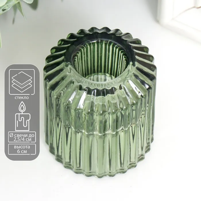 Стеклянный подсвечник на 1 свечу «Долли», d=2.5 см, 4 см, зелёный, 6×5×5 см — Характеристики