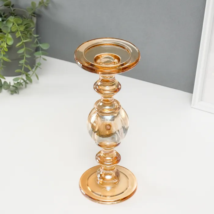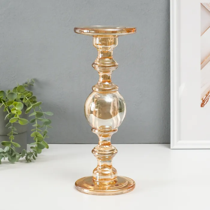 Стеклянный подсвечник на 1 свечу двусторонний «Классический с шаром», карамельный, 30×11.3×11.3 см — Характеристики