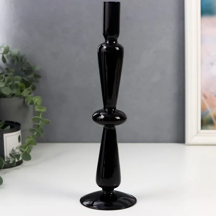Стеклянный подсвечник на 1 свечу «Эльзас», чёрный, 30×8.5×8.5 см — Характеристики
