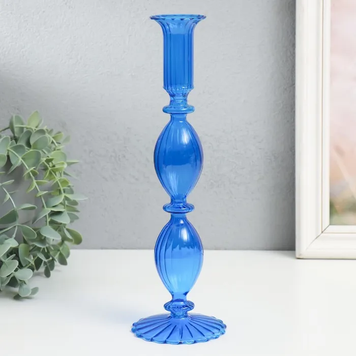 Стеклянный подсвечник на 1 свечу «Физалис», прозрачный синий, 8×8×21 см — Характеристики