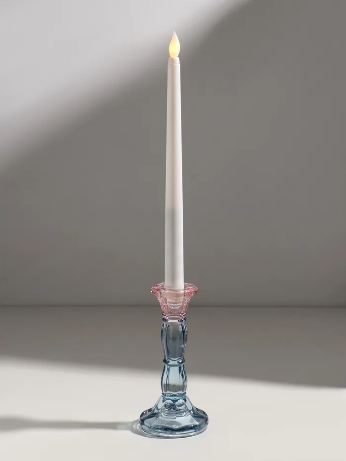 Стеклянный подсвечник с уникальной фактурой и нежным градиентом розово-голубых оттенков становится акцентом в любом интерьере. Его компактные размеры 7×7×15 см и диаметр под свечу 2,2 см идеально подходят для создания уютного освещения с тонким художественным акцентом.