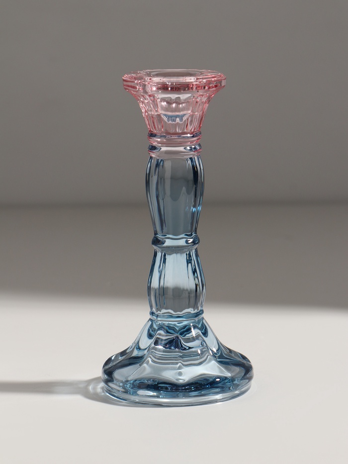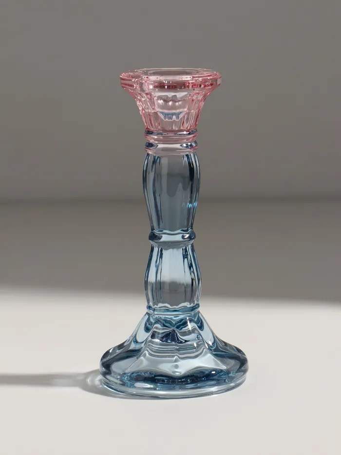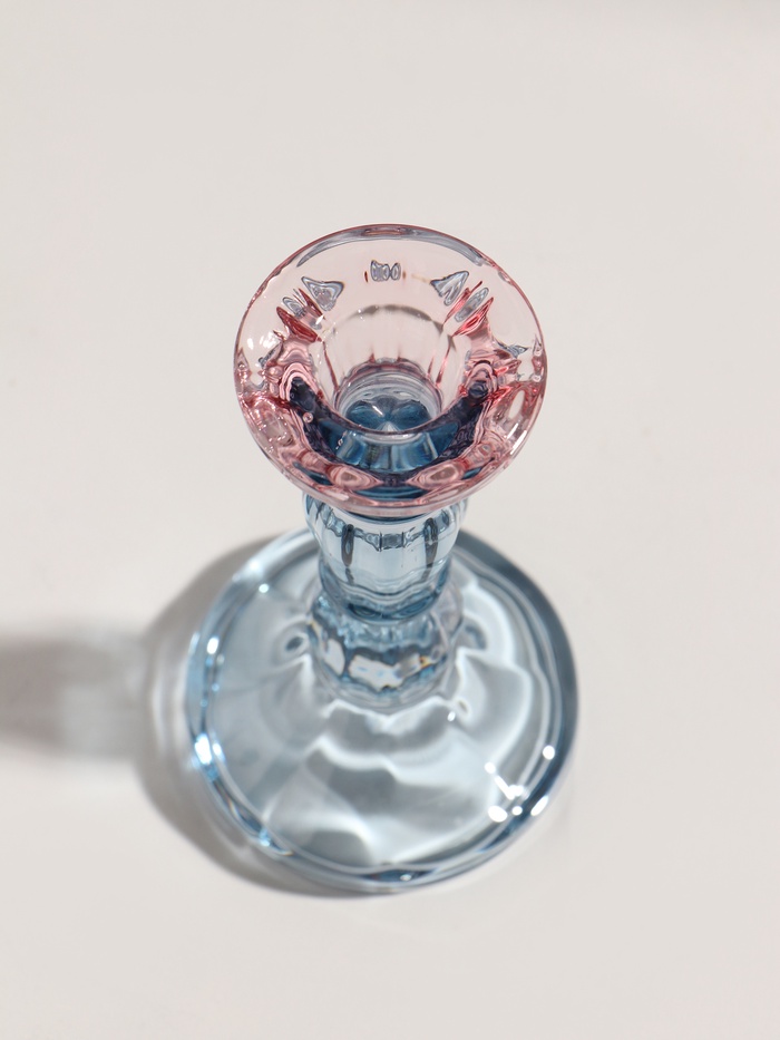 Стеклянный подсвечник на 1 свечу «Градиент. Фактура», розово-голубой, d=2.2 см, 7×7×15 см — Характеристики