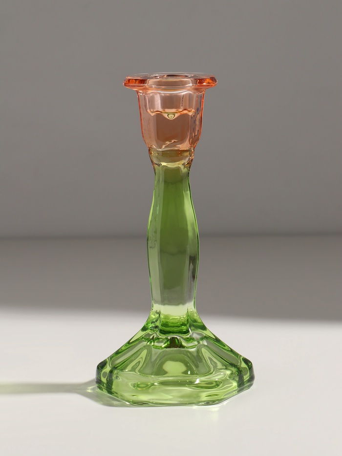 Стеклянный подсвечник на 1 свечу «Градиент. Грани», оранжево-зелёный, d=2.2 см, 10×10×19 см — Характеристики