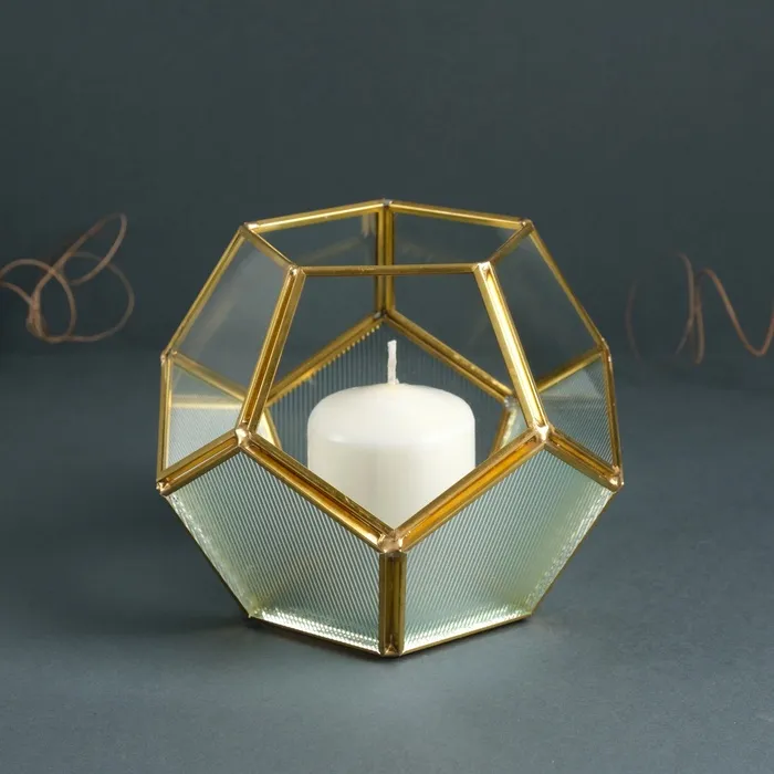 Стеклянный подсвечник на 1 свечу «Гранённый шар», прозрачный, металл, 16×16×14 см — Характеристики