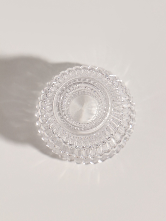 - Элегантность в деталях: прозрачное стекло с рифлёным узором создаёт игру света, превращая обычную свечу в миниатюрный арт-объект.