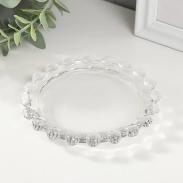 Стеклянный подсвечник на 1 свечу «Капли на стекле», d=8 см, прозрачный, 11.5×11.5×1.6 см