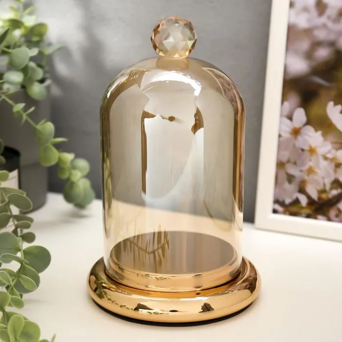 Стеклянный подсвечник на 1 свечу «Колба с кристаллом», золотая карамель, 20.6×12.5×12.5 см — Характеристики