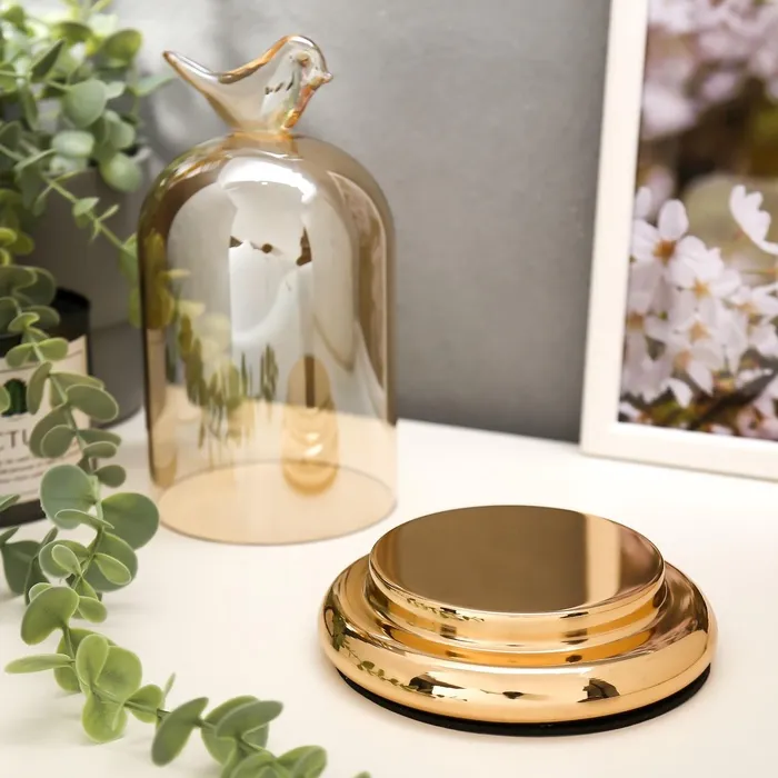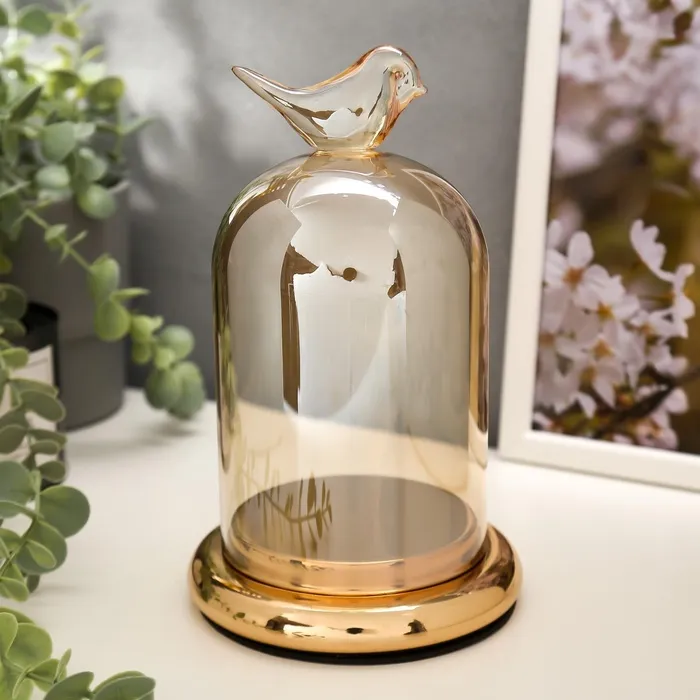Стеклянный подсвечник на 1 свечу «Колба с птичкой», золотая карамель, 21.5×12.5×12.5 см — Характеристики