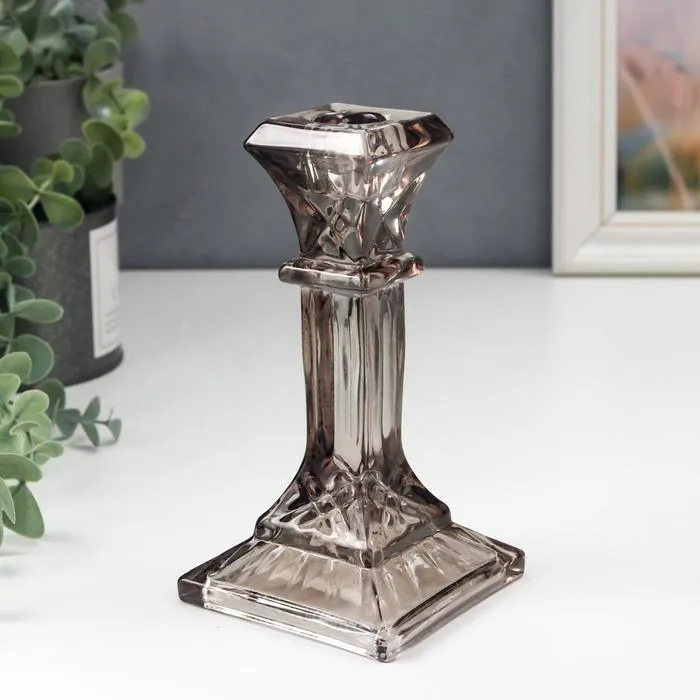 Стеклянный подсвечник на 1 свечу «Колонна прямоугольная», фиолет прозрачный, 16×8.6×8.6 см — Характеристики