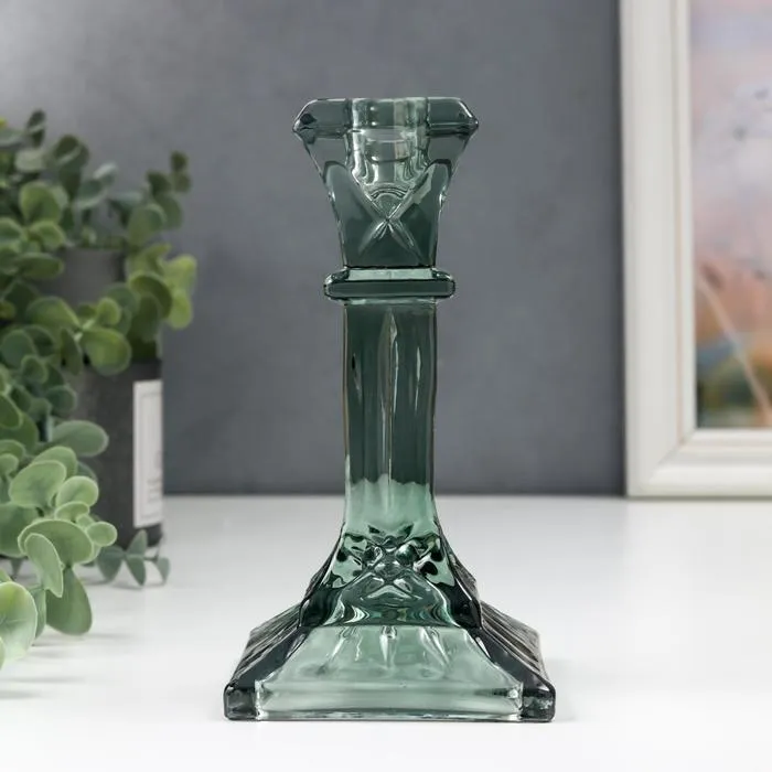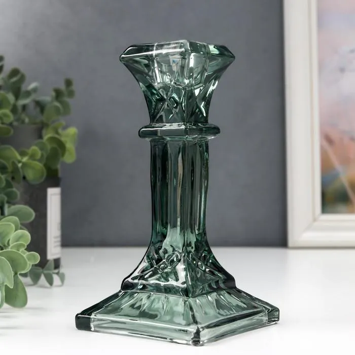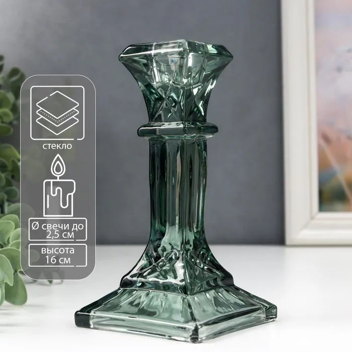 Стеклянный подсвечник на 1 свечу «Колонна прямоугольная», зелёный прозрачный, 16×8.6×8.6 см — Характеристики