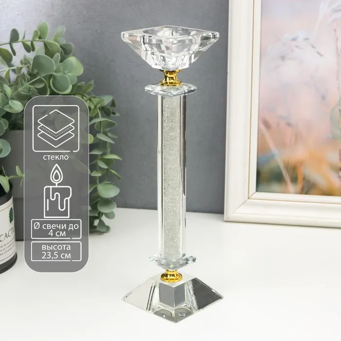 Стеклянный подсвечник на 1 свечу «Колонна с бисером», 23.5×6.5×6.5 см — Характеристики