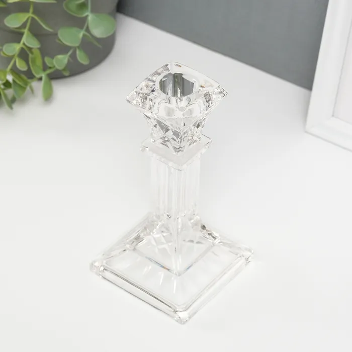 Стеклянный подсвечник на 1 свечу «Колонна с прямоугольная», прозрачный, 16.5×8.3×8.3 см — Характеристики