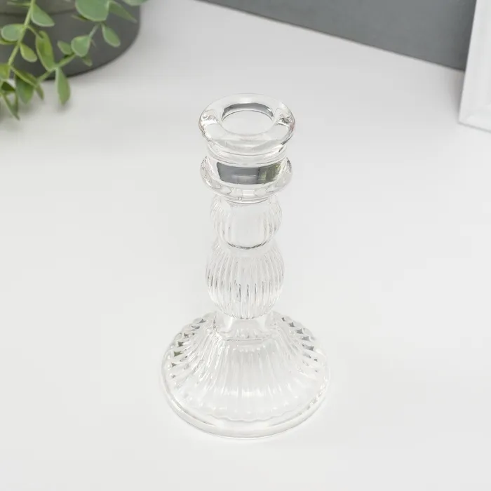 Стеклянный подсвечник на 1 свечу «Колонна с шарами», прозрачный, 15.5×8×8 см — Характеристики