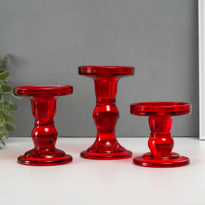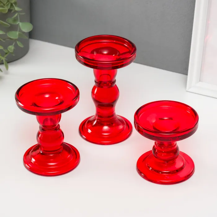 Стеклянный подсвечник на 1 свечу «Креманка», набор 3 шт., красный, h=8.5, см 11.4 см, 14×8.5×8.5 см — Характеристики