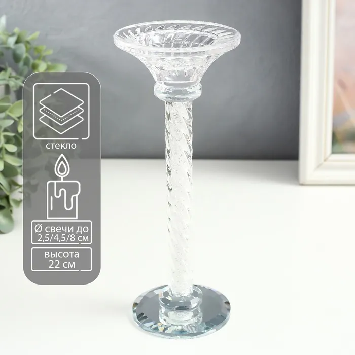 Стеклянный подсвечник на 1 свечу «Кристалл конус», 9.5×6.5×6.5 см — Характеристики