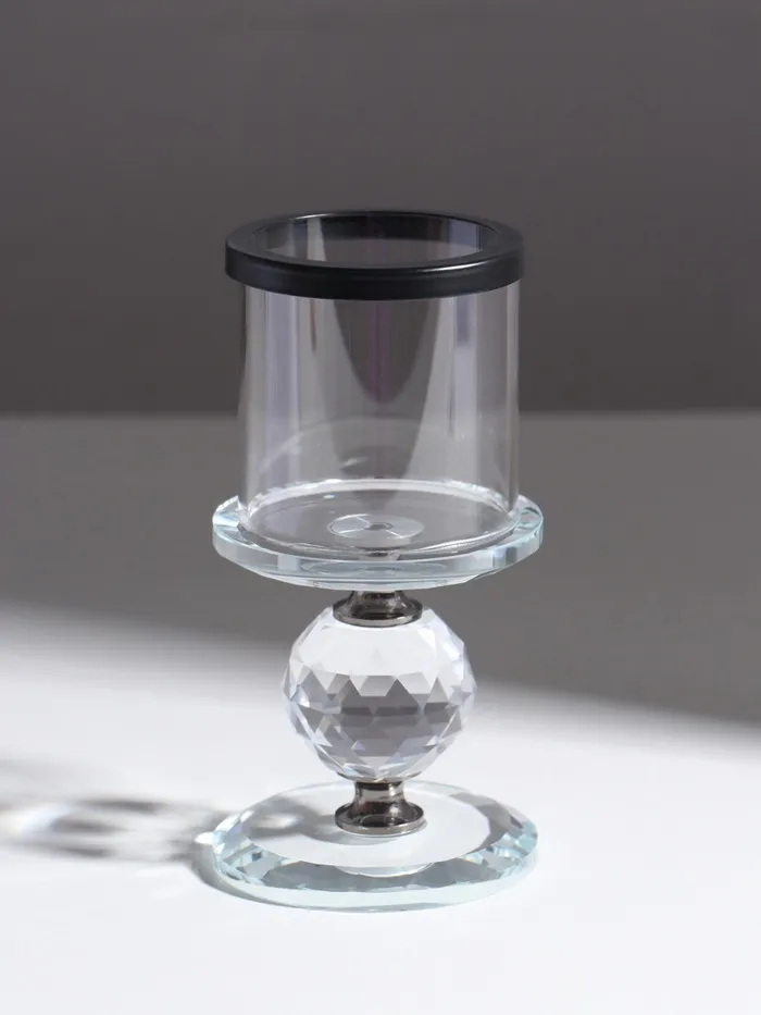 Стеклянный подсвечник на 1 свечу «Кристалл шар», чёрные вставки, 14×7×7 см — Характеристики