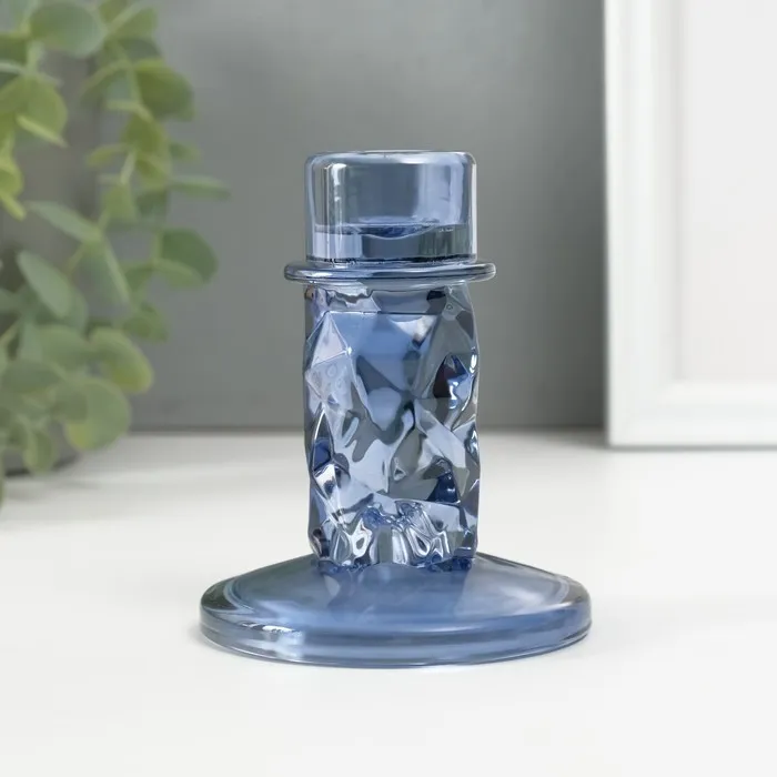 Стеклянный подсвечник на 1 свечу «Лёд», синий, d=2 см, 8×8×10 см
