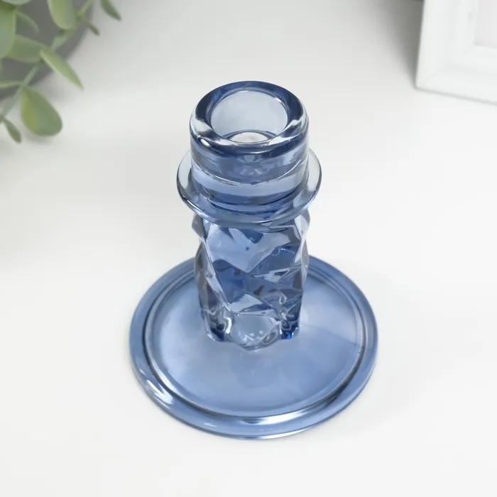 Стеклянный подсвечник на 1 свечу «Лёд», синий, d=2 см, 8×8×10 см — Характеристики