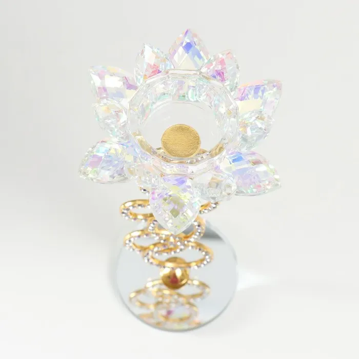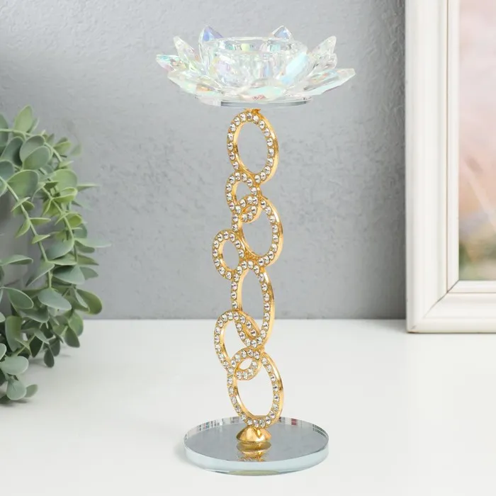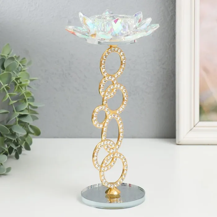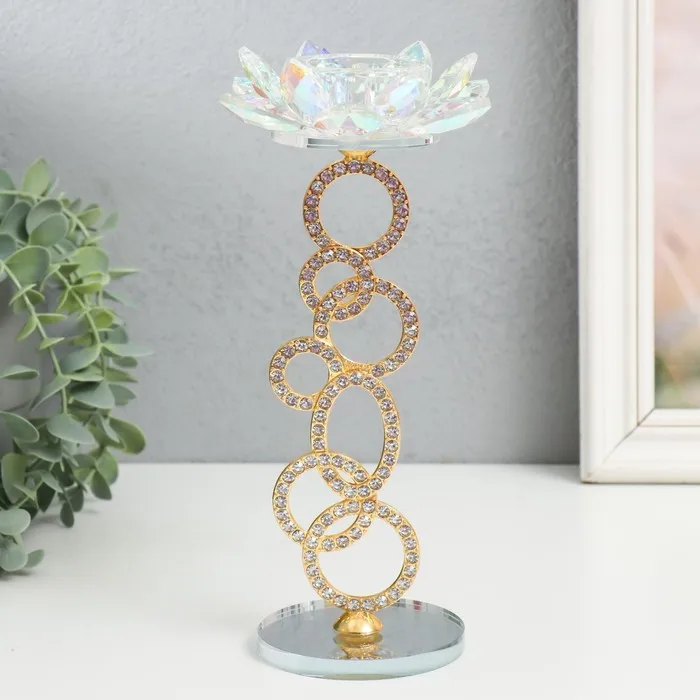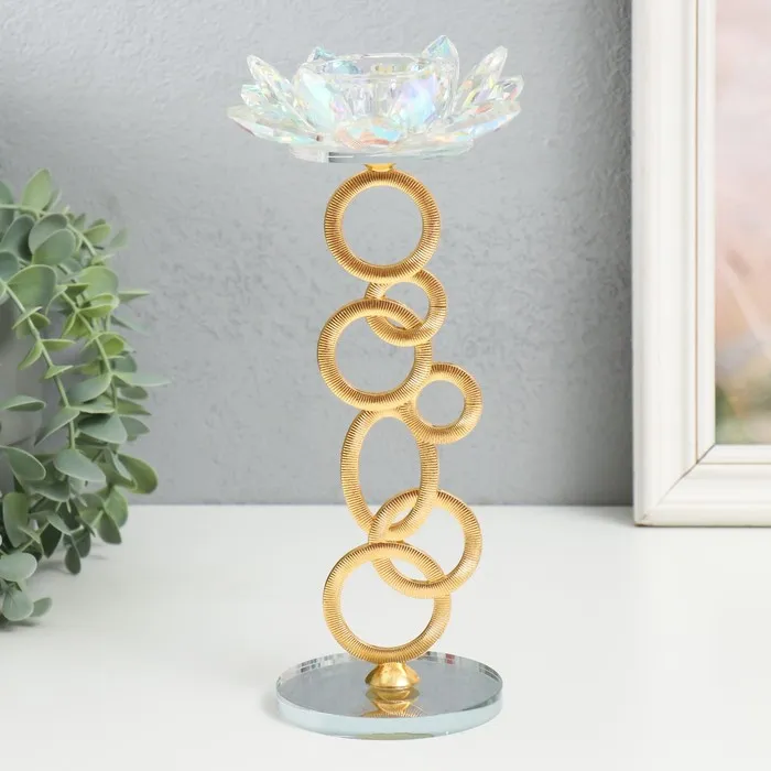 Стеклянный подсвечник на 1 свечу «Лотос на кольцах», золото, d=4.2 см, 11×11×23 см — Характеристики