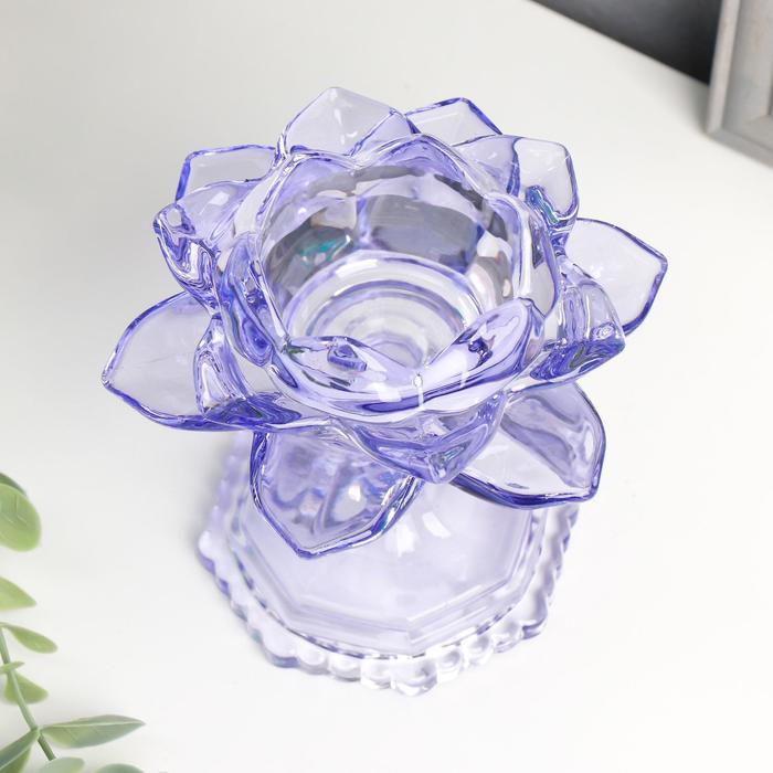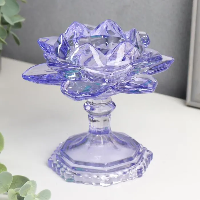 Стеклянный подсвечник на 1 свечу «Лотос на ножке», синий, 12.5×12×12 см