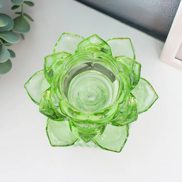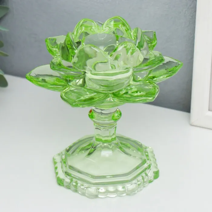 Стеклянный подсвечник на 1 свечу «Лотос на ножке», зелёный, 12.5×12×12 см — Характеристики